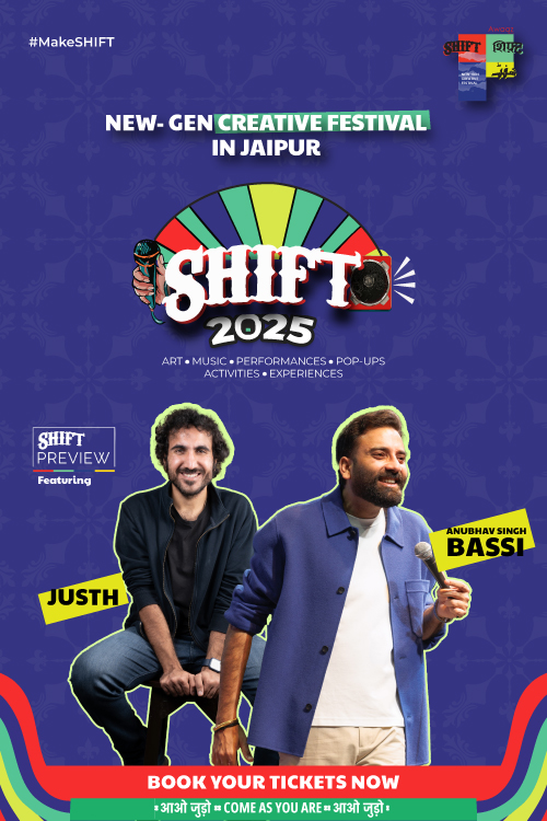 From 19 to 21 December, SHIFT Festival 2025 returns to Jaipur and turns Birla Auditorium into a space where creativity feels easy, joyful and open to everyone. With 30,000+ people joining each year, the festival is home to 140+ homegrown brands, immersive art, open mics, jams, workshops, kids activities, community zones and an Experience Mela designed to keep every age group hooked. This year also brings two of India’s most loved artists- Anubhav Bassi who brings the mayhem & Justh who brings the feels, and you get a head start before the festival rush, with early access to installations, pop-ups, workshops and the full vibe before the gates open wide.